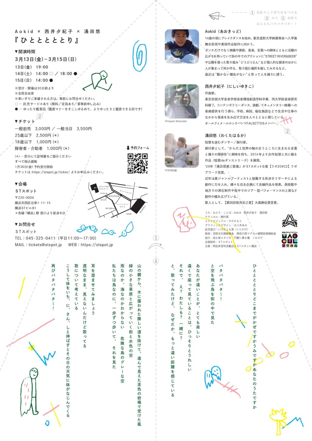 STスポット主催 新作公演 Aokid×西井夕紀子×涌田悠『ひとととととり』(STスポット・2026/3/13-15)