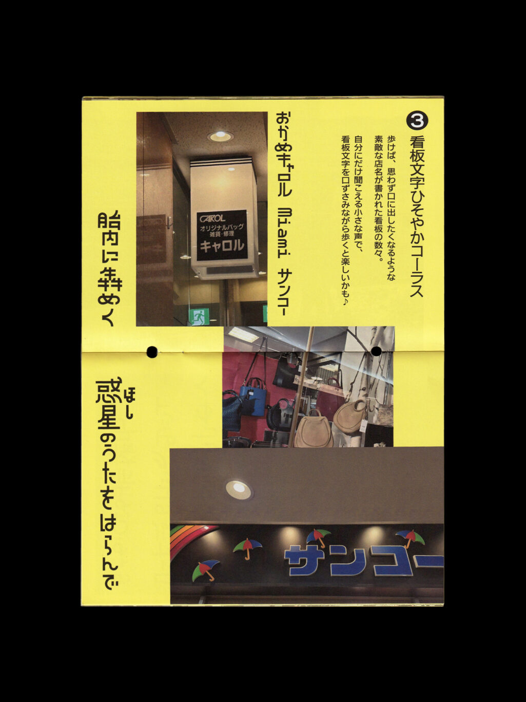 永尾仁さんデザインの素敵なツアーマップは、期間中YAU KIOSK にて随時配布します。短歌のイメージから、ひとつひとつの文字をデザインしていただきました!(うれしすぎる…)踊り出しそうな文字たちにも注目です◎
